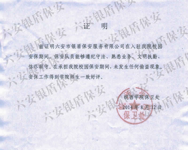 六安銀盾保安得到皖西學(xué)院高度評(píng)價(jià)